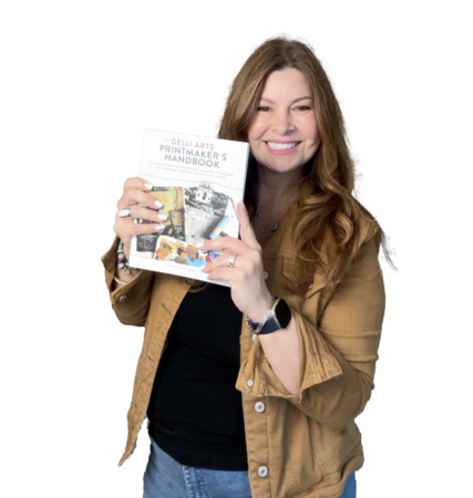 As both an artist and an art teacher, I’ve seen how gel printing can unlock creativity in people at every level. That’s why I created The Gelli Arts® Printmaker’s Handbook. It’s structured to guide you from the basics of pulling your first print all the way to layering, composition, and more advanced image transfers. My goal was to give you a resource that feels like having me in the studio with you, encouraging you to play, experiment, and grow as a printmaker.